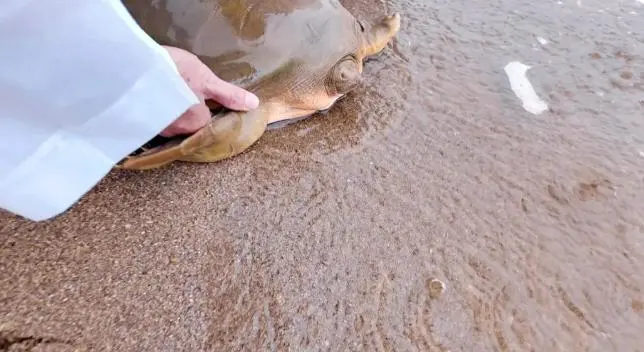 9月19日上午,市海洋综合执法支队联合市林业局把这只鼋给运到了潮州韩江鼋、花鳗鲡市级自然保护区江段。找了一处合适的区域,他们将这只鼋放在了河岸边,鼋马上头也不回地钻入水中消失了。