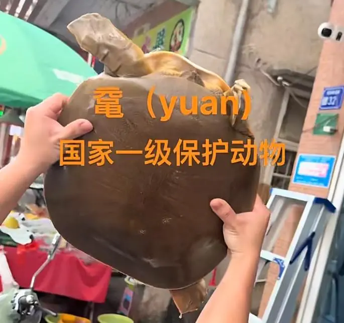 好家伙!这是国家一级保护野生动物——鼋(Pelochelys cantorii)!