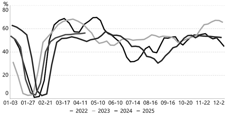 近期,钢厂生产经营状况有所改善,长流程和短流程钢厂均维持着较高的生产负荷。以短流程电炉钢厂为例,根据相关调研数据,当前短流程钢厂产能利用率逐步回升至56.3%,环比呈现逐步回升的态势,同比增长7.3个百分点,增幅逐步扩大。